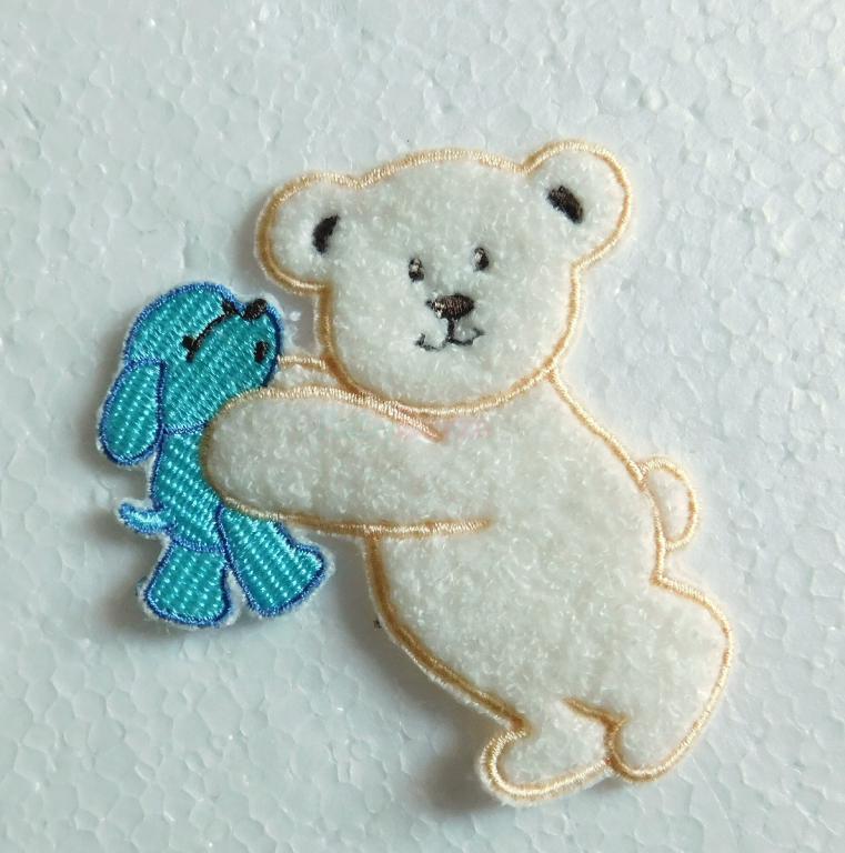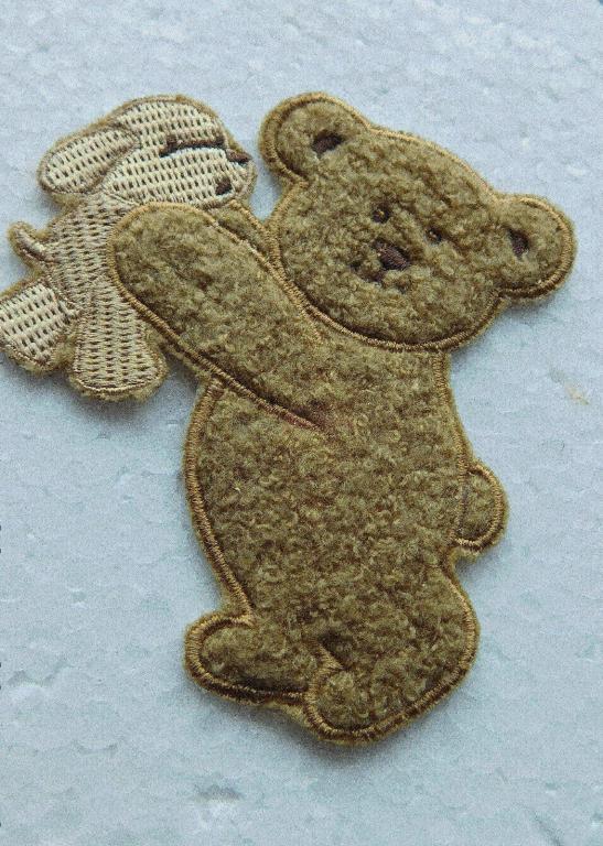 aplikácia, nášivka macko, už nepotrebná, nenašitá, nepoužitá, macko je akoby kožušinkový, s motívom psíka, 10 x 8.5cm, merané v najširšej časti, 3 krásne farby, viac kusov zlava, kvalitná nášivka akoby kožušina, pevná