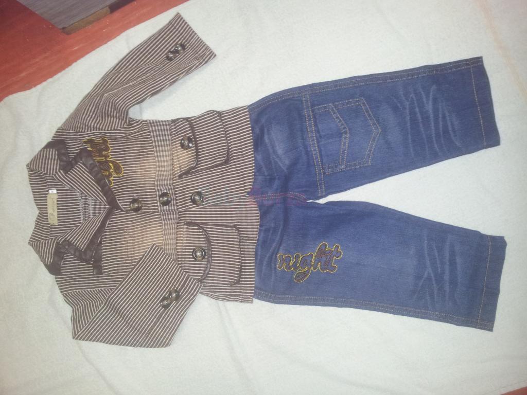 Set obsahuje sako a rifle.Je pre malých fešákov,veľmi pekný.My sme ho využili len na fotenie,tak je ako nový,nenosený.